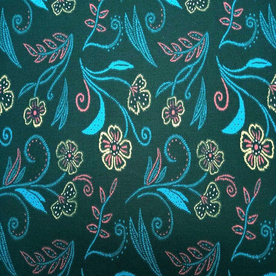Turquoise Floral on Dark Green Scrub Cap