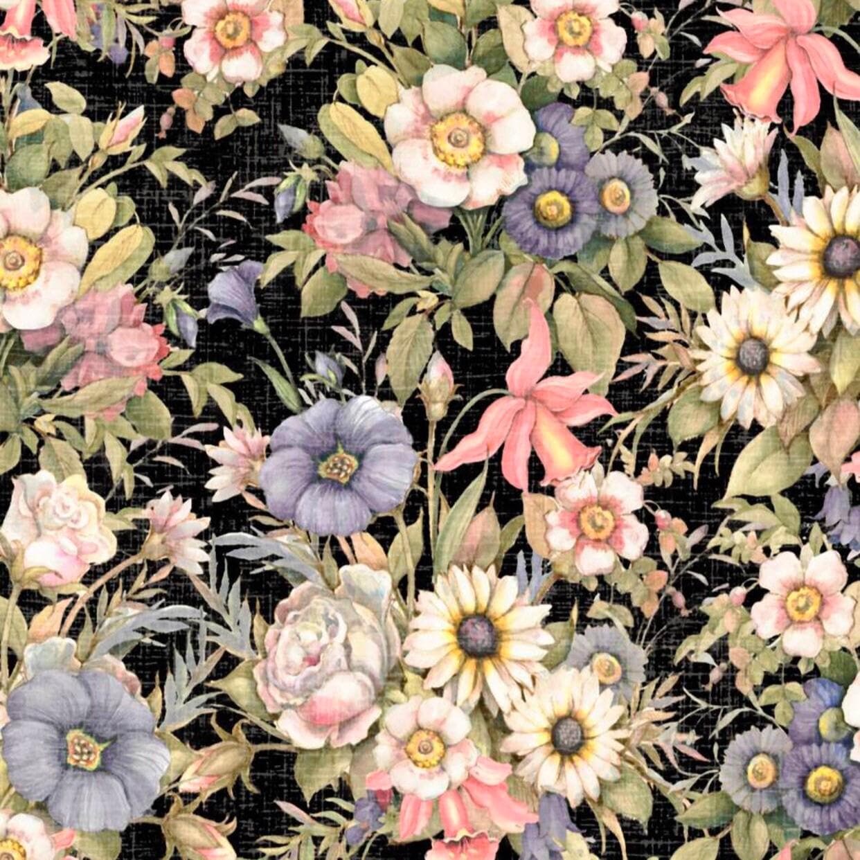 SPR - Sketched Pink Floral on Black Scrub Cap